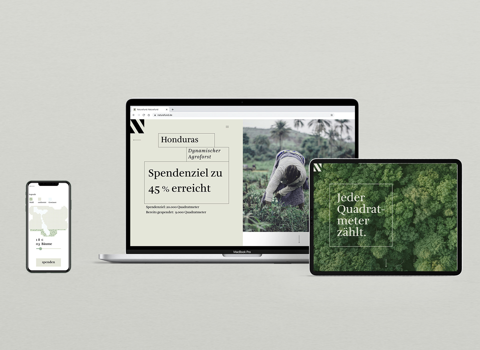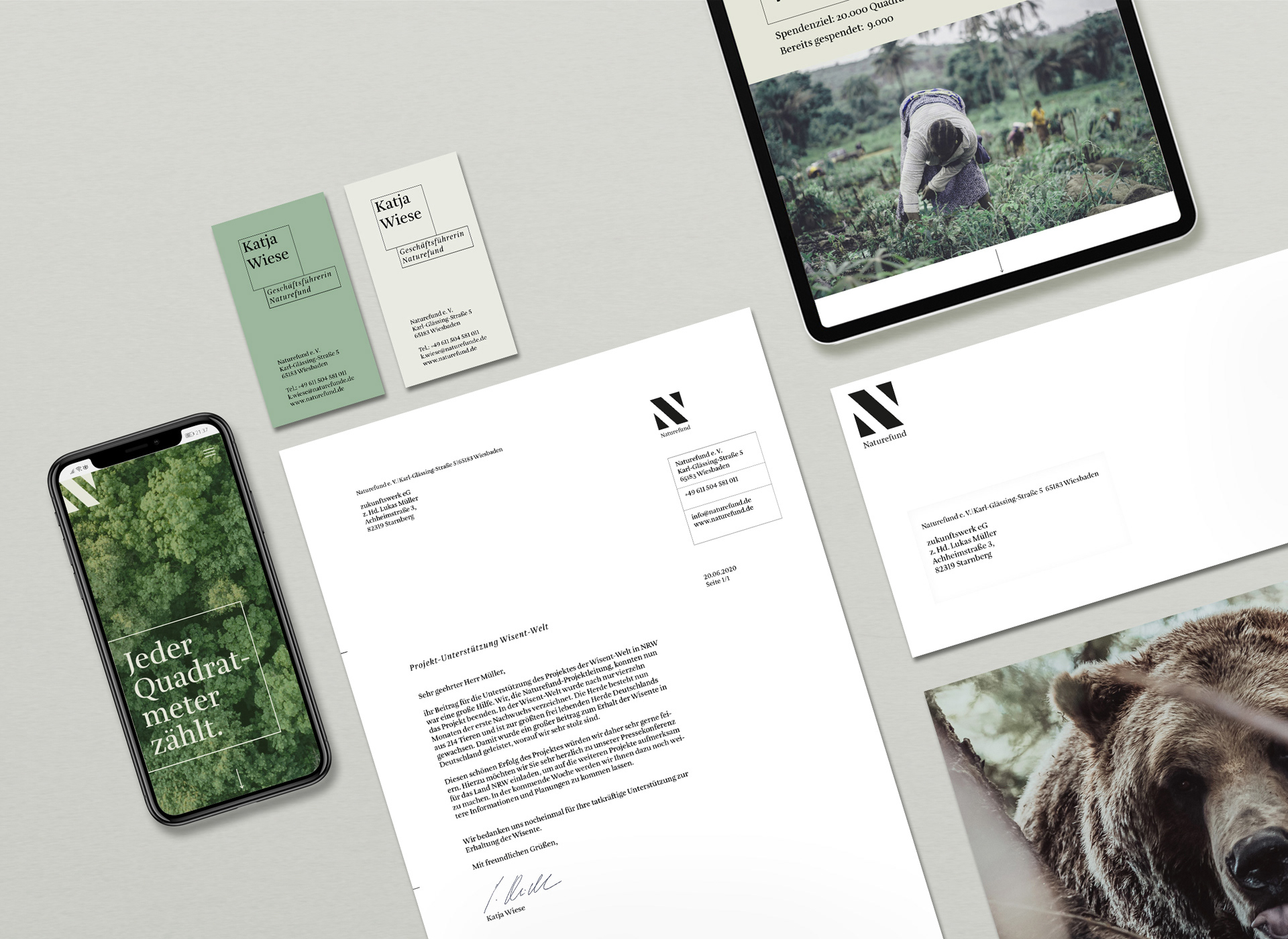 Naturefund _ Die weltweiten Waldverluste schreiten seit Jahrzehnten weiter voran. Durch Umweltkatastrophen, Städtebau oder Abholzung verlieren wir immer mehr intakte Ökosysteme. Um dem Trend der schrumpfenden Waldflächen entgegen zu wirken, wurde der Verein Naturefund gegründet. Die gemeinnützige Naturschutzorganisation kauft weltweit Land, um die natürlichen Lebensräume zu erhalten. Flächenkauf ist eine sichere Maßnahme, um einen Teil der Naturschätze zu bewahren. Obwohl das Bewusstsein um die Wichtigkeit des Umweltschutzes in der Bevölkerung immer größer wird, ist die Bereitschaft zum Spenden in Deutschland aber seit langem rückläufig. Umso wichtiger ist es, der Organisation ein klares und modernes Auftreten zu geben. Das neue Design für Naturefund soll die zentralen Werte und das Alleinstellungsmerkmal der Organisation widerspiegeln.