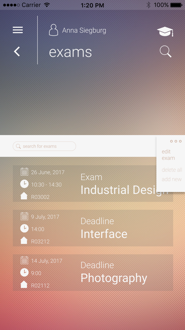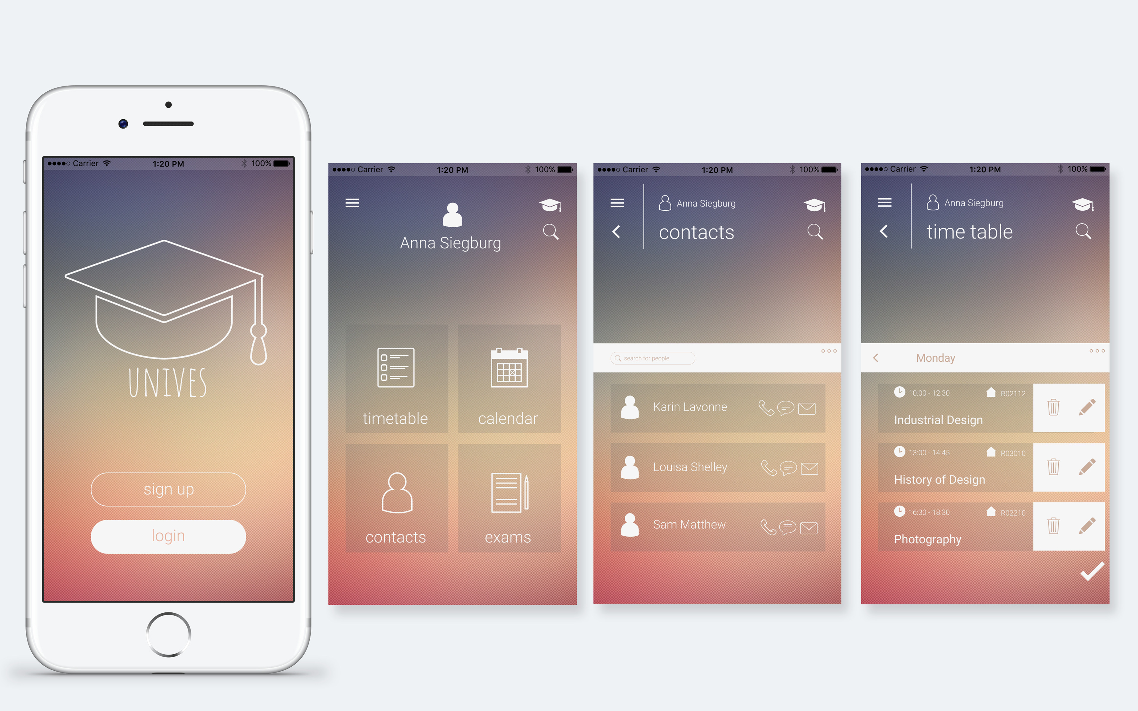 Unives _ Interfacedesign sowie Prototyping der App "Unives", welche das Studentenleben erleichtern soll.